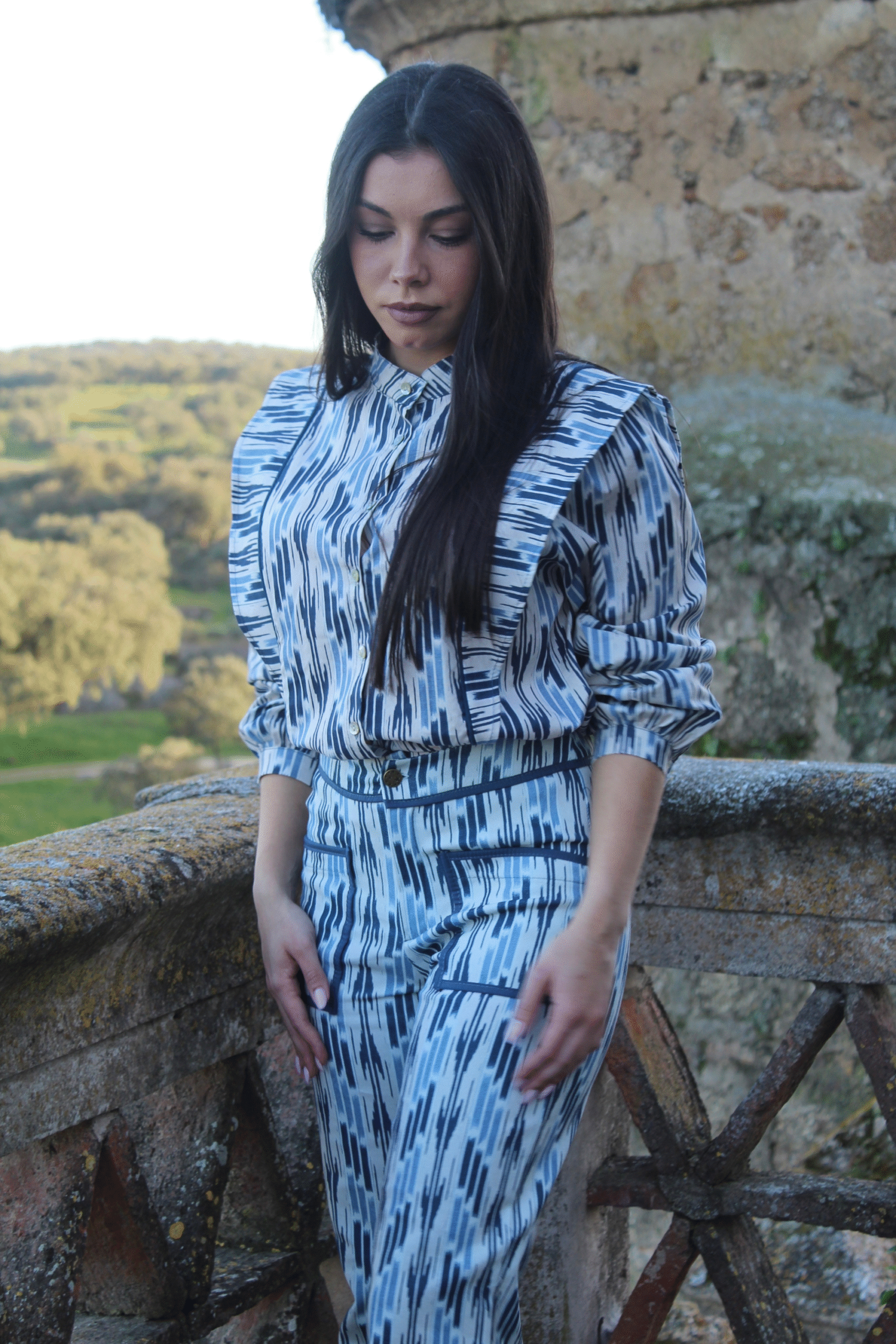 Camisa con cuello redondo, con botones en la parte delantera y volante en la parte de la hombrera. Talla: Única. Puede dar desde una talla 32 hasta una 42. Estampado con distintos tonos del mismo color.