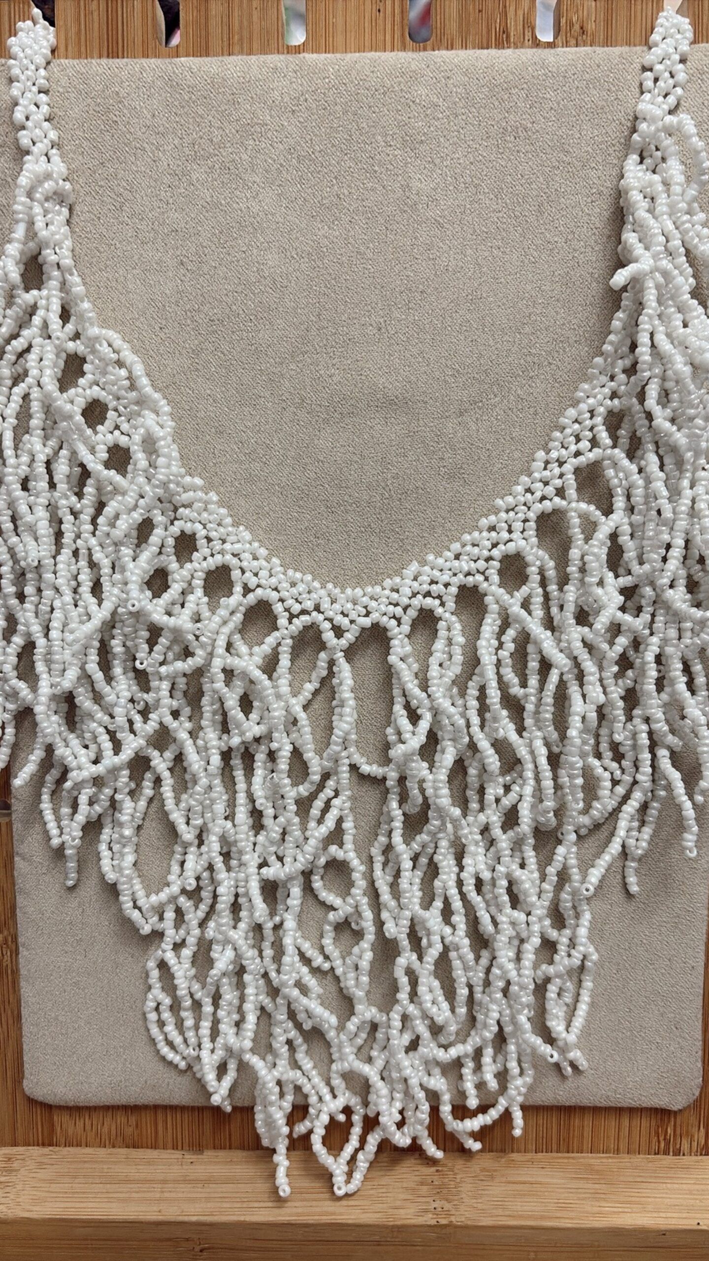 Collar de bolitas blancas simulando corales.